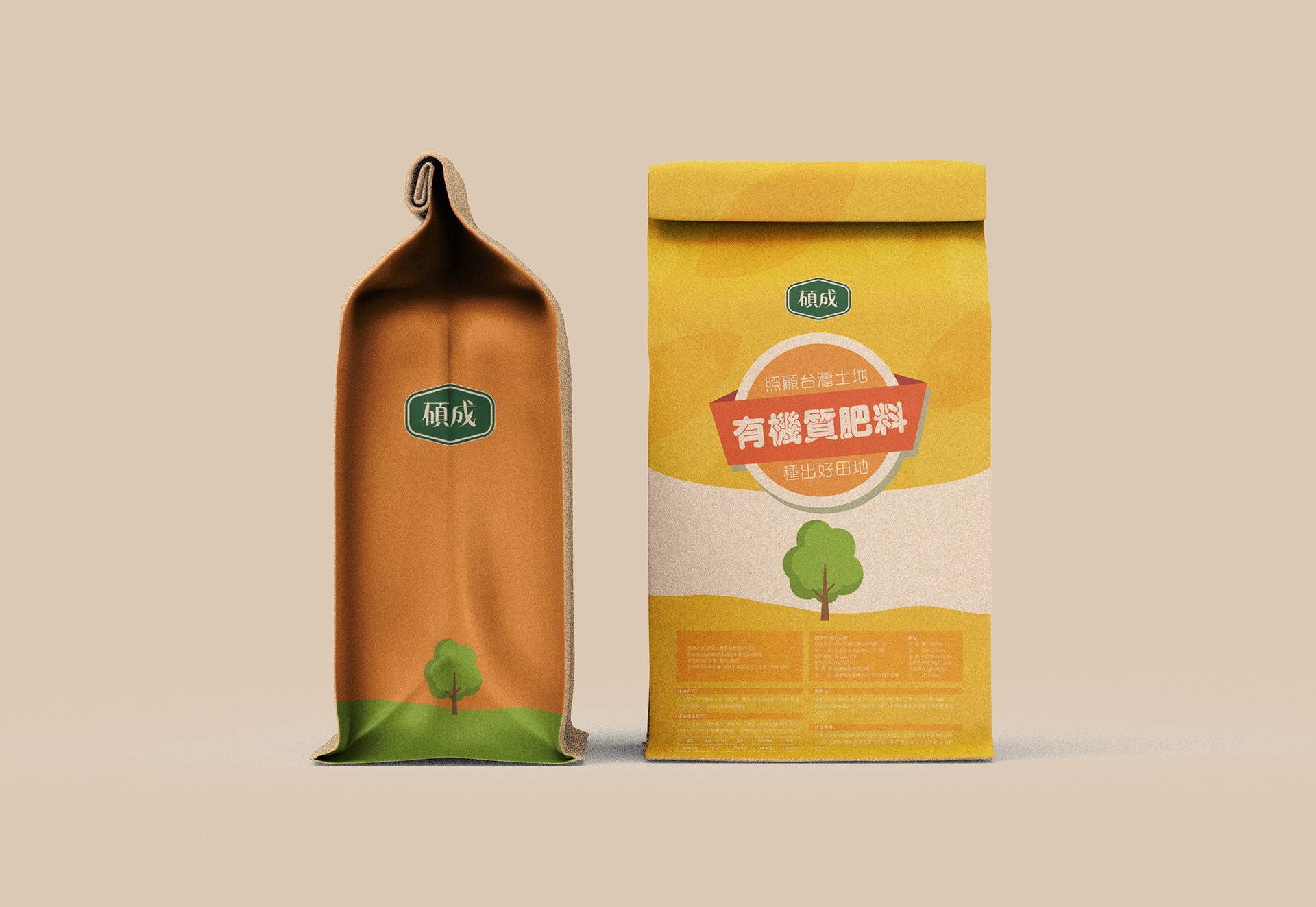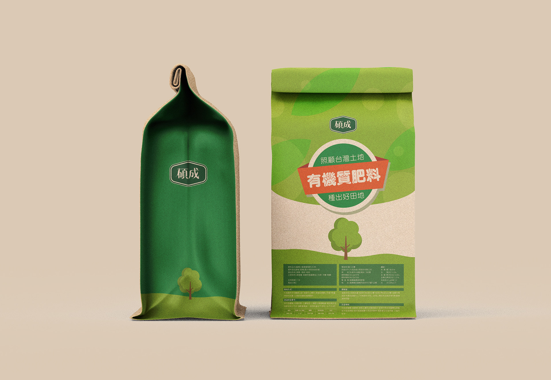 LOGO設計結合了原大成集團LOGO的輪廓與綠植。這些元素的結合,旨在表達「碩成肥料」的對有機質肥料的承諾,以及對生態環境的關注。深綠色的配色是一個自然、清新的象徵,綠植的圖案則代表了生長的力量,這是對有機質肥料所帶來的效益的體現。結合大成集團的LOGO輪廓,表現出「碩成肥料」是一個正統、值得信賴的品牌。