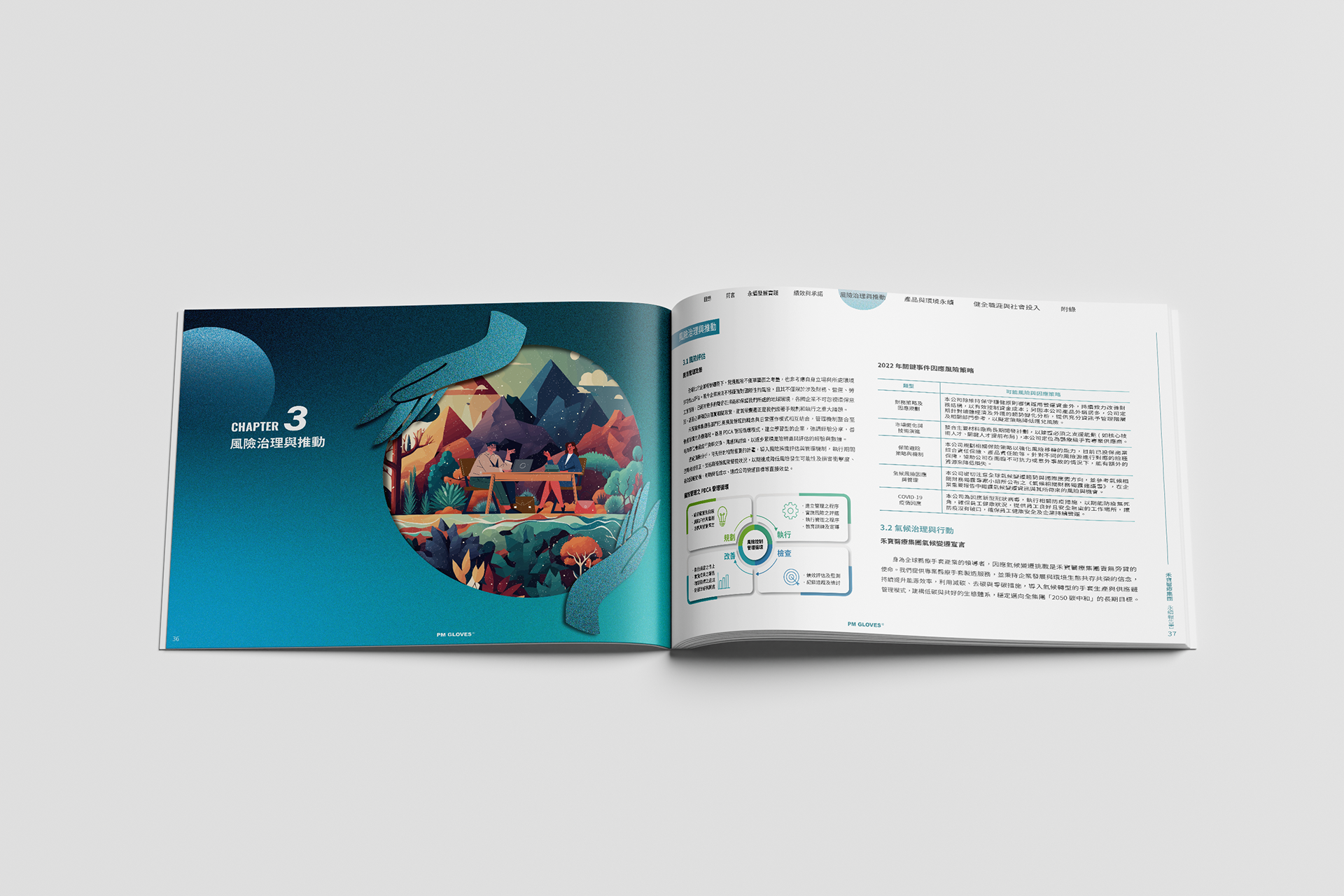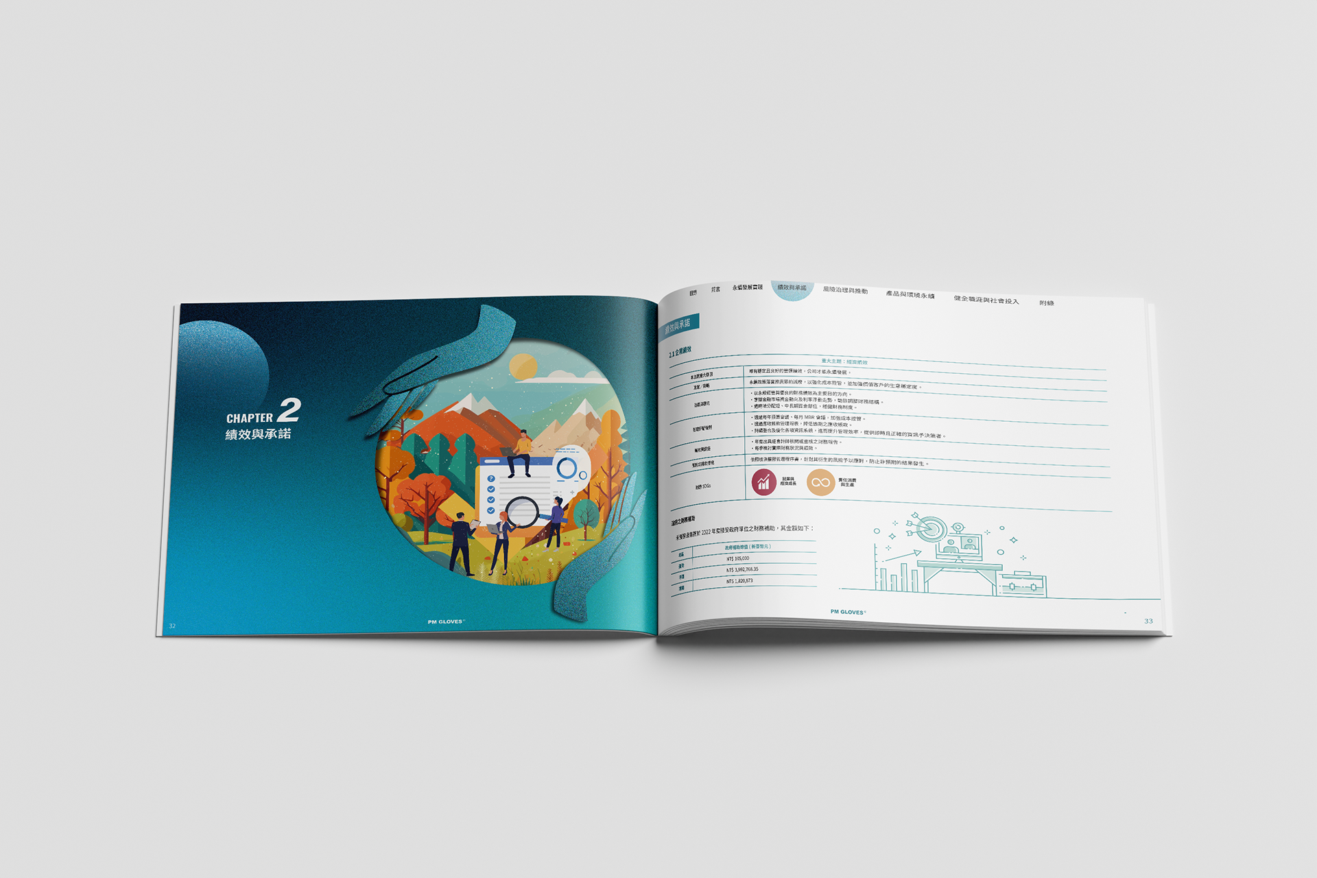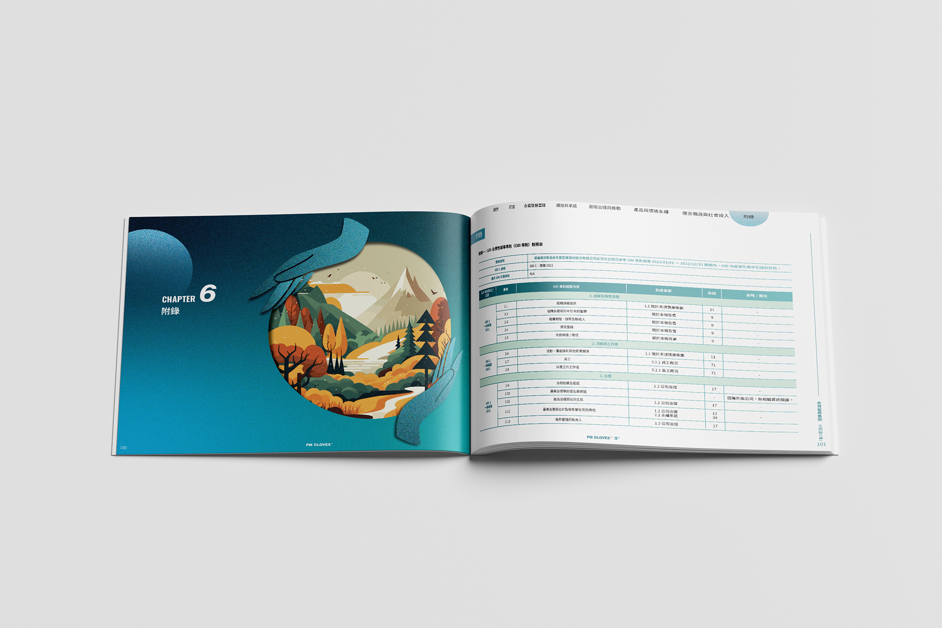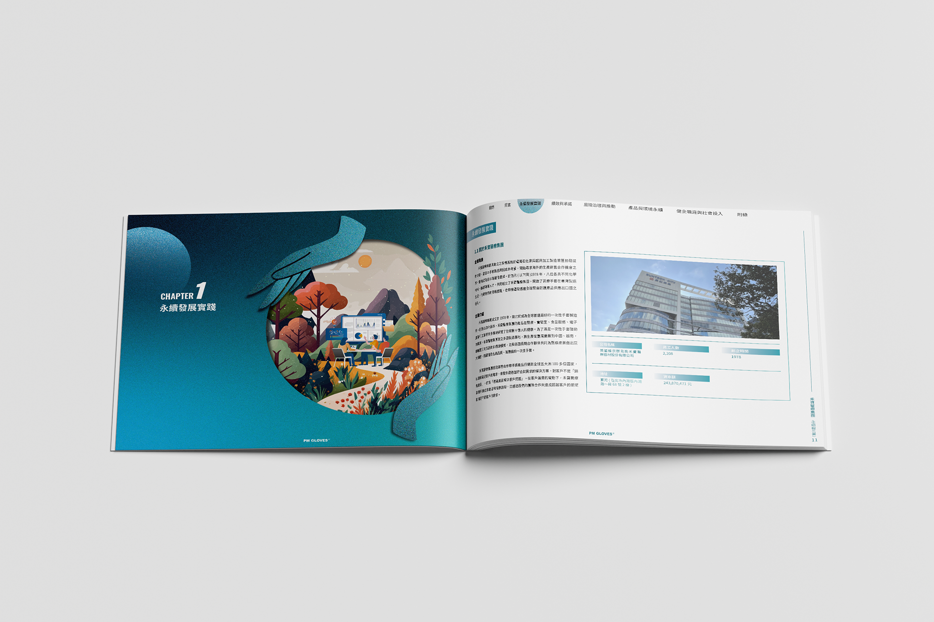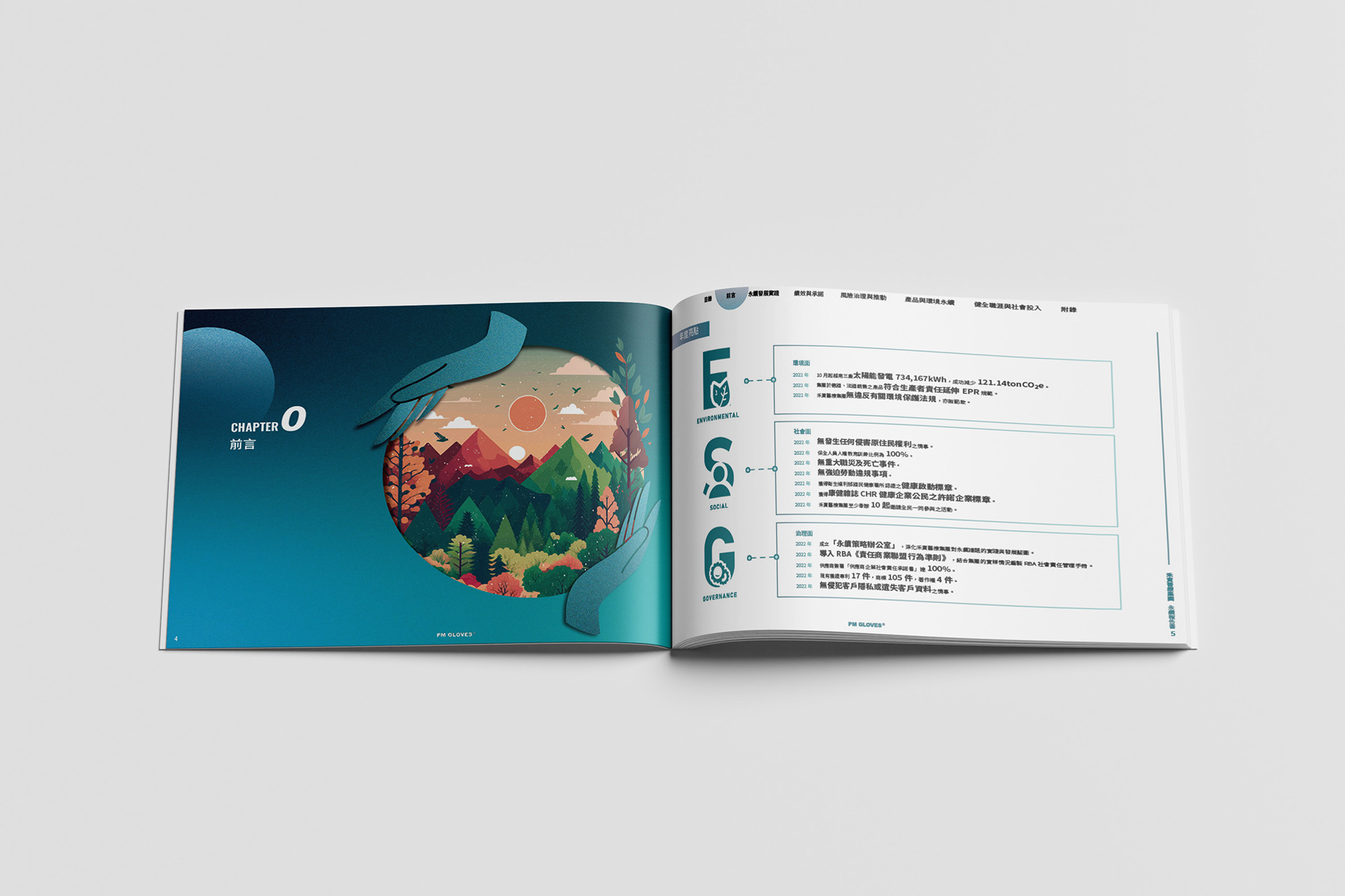 本次ESG永續報告書的主視覺以「手套與線條」為核心視覺語彙